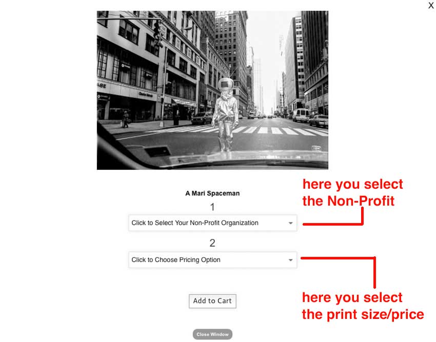 here you select Non-Profit and Print Size / Price